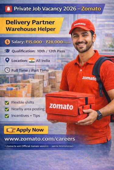 zomato private job vacancy 2026 delivery partner job apply online warehouse helper private job 10th pass private jobs India latest private job update