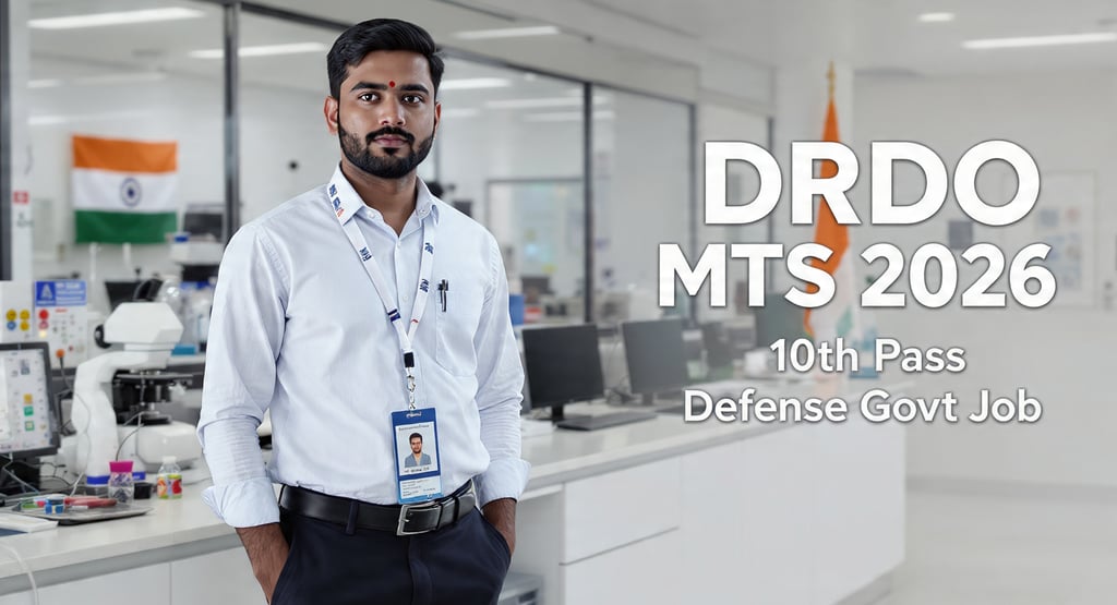 अगर आप 10th pass हैं और Defence sector में Central Government job पाना चाहते हैं, तो DRDO MTS Recruitment 2026 आपके लिए एक golden opportunity है। Defence Research and Development Organisation (DRDO) में Multi Tasking Staff (MTS) की नौकरी का मतलब है permanent Central Government job, fixed salary, pension benefits और देश की top defence organisation में काम करने का सम्मान। DRDO MTS की vacancy हर बार Google, YouTube और Telegram पर explosively trending रहती है, क्योंकि यह भर्ती low qualification + high security + defence tag का एक rare और powerful combination देती है। 👉 अगर आप 10th pass ke baad safe, respected aur future-secure job चाहते हैं, तो DRDO MTS Recruitment 2026 को ignore करना आपके लिए एक बड़ी गलती हो सकती है।
