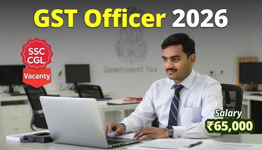 GST Officer ek central government officer-level post hoti hai jo Goods and Services Tax (GST) se related tax collection, inspection aur compliance ka kaam dekhti hai. Ye recruitment mainly Staff Selection Commission (SSC) ke through hota hai, aur posting Central Board of Indirect Taxes and Customs (CBIC) ke under milti hai.
