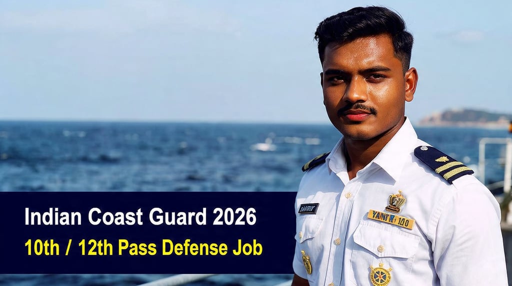 भारतीय तटरक्षक बल (Indian Coast Guard) द्वारा Navik (GD/DB) एवं Yantrik पदों पर भर्ती के लिए Indian Coast Guard Recruitment 2026 जारी की जाएगी। यह भर्ती विशेष रूप से 10वीं और 12वीं पास अभ्यर्थियों के लिए देश की सबसे लोकप्रिय और ट्रेंडिंग डिफेंस सरकारी नौकरियों में शामिल मानी जाती है।