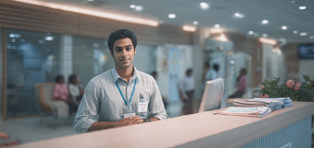 Private hospitals, clinics और diagnostic centers में Medical Receptionist / Front Desk Executive पदों के लिए requirement है।