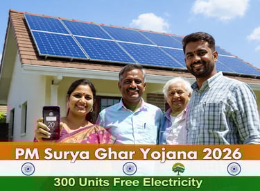 PM Surya Ghar Muft Bijli Yojana 2026 के तहत अब घरों की छत पर सोलर पैनल लगवाकर हर महीने 300 यूनिट तक मुफ्त बिजली पाई जा सकती है। इस योजना में मिलने वाली सब्सिडी, पात्रता शर्तें, नए नियम और ऑनलाइन आवेदन की पूरी प्रक्रिया को विस्तार से जानें