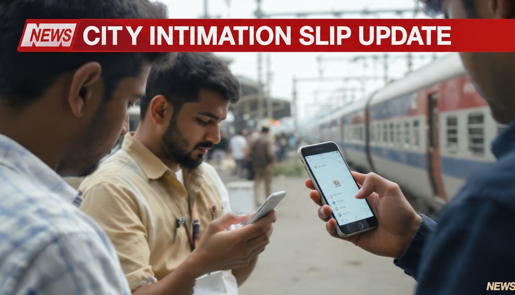 Railway Recruitment Board (RRB) ke CBT examinations se pehle City Intimation Slip ko लेकर ek important update saamne aaya hai। City Slip ke madhyam se candidates ko exam city, exam date aur shift timing se judi jankari di jaati hai। RRB ke niyam ke anusar City Intimation Slip ko Admit Card jaari hone se kuch din pehle official websites par activate kiya jata hai। Candidates ko salah di ja rahi hai ki ve apne respective RRB portal ko regular basis par check karte rahein aur kisi bhi unofficial website, fake link ya afwah par bharosa na karein। Latest aur authentic updates ke liye sirf official RRB websites ka hi upyog karein।