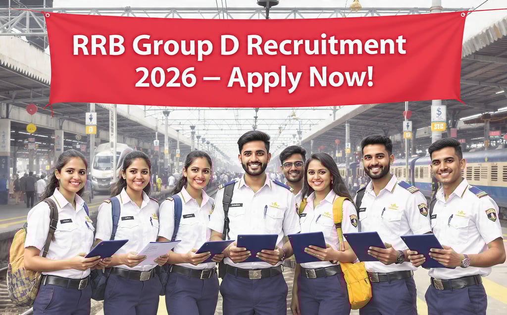 RRB Group D Recruitment 2026 ke liye bharti khuli hai. Yaha aapko eligibility, age limit, salary, selection process aur apply process ki puri jankari milegi. Sarkari naukri ka intezar kar rahe yuva candidates ke liye ye ek achha mauka hai. Jaldi apply karein!