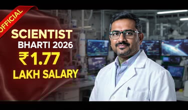 Scientist Bharti 2026 ke liye ISRO, DRDO aur CSIR jaise top research organizations me jaldi hi notification release hone ki sambhavana hai. B.E./B.Tech, M.Sc, M.Tech aur PhD qualified candidates Scientist ‘B’ aur anya research posts ke liye apply kar sakte hain. Salary Level 10 (7th CPC) ke anusar ₹56,100 se ₹1,77,500 per month tak ho sakti hai. Selection process me Written Exam, GATE Score (agar required ho), Interview aur Document Verification shamil hota hai. Is video/article me aapko age limit, eligibility criteria, salary structure, selection process aur official apply link ki poori jankari milegi. Sirf official website se hi online form bharein.