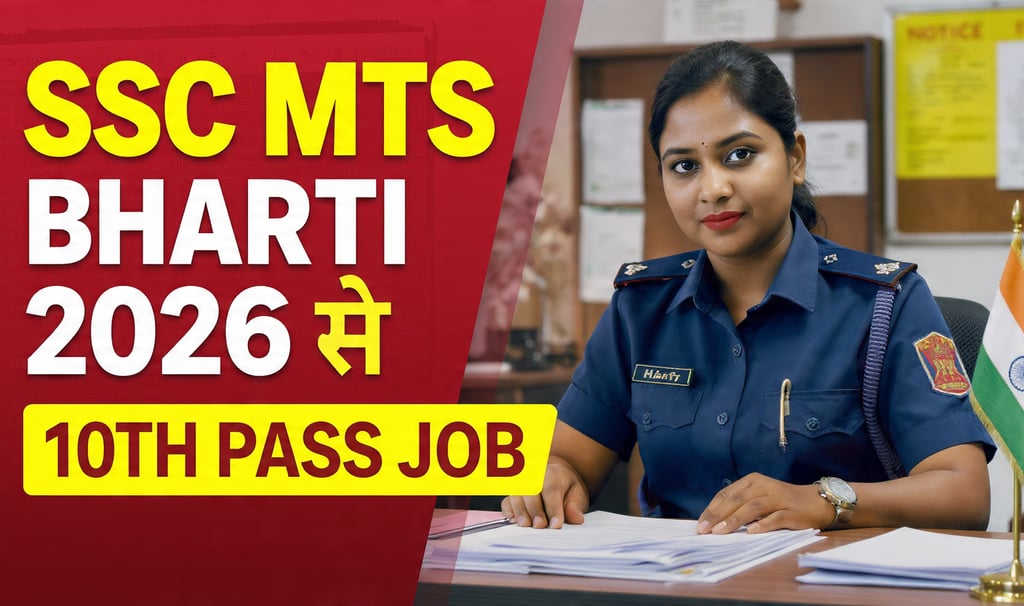 SSC MTS Bharti 2026 ke liye Staff Selection Commission dwara Multi Tasking Staff (MTS) aur Havaldar posts par notification jald release kiya ja sakta hai. 10th pass candidates is central government job ke liye online apply kar sakte hain. Pay Level 1 ke anusar salary тВ╣18,000 se тВ╣56,900 per month tak ho sakti hai, saath hi DA, HRA aur anya allowances bhi milte hain. Selection process me Computer Based Test (CBT) shamil hoga, aur Havaldar post ke liye Physical Efficiency Test bhi conduct kiya jayega. Is article/video me aapko age limit, eligibility criteria, exam pattern, salary details aur official apply link ki complete jankari milegi. Online form bharne se pehle official notification jarur check karein.