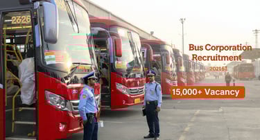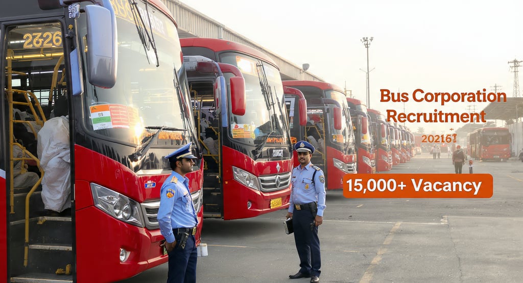 Bus Corporation Recruitment 2026 ke tahat alag-alag state transport departments jaise UPSRTC aur DTC me 15,000+ vacancies expected hain. 10th, 12th, ITI aur Graduate candidates Driver, Conductor, Clerk aur Technician posts ke liye apply kar sakte hain. Selection written exam, driving/skill test aur document verification ke through hoga. Salary ₹18,000 se ₹45,000 per month tak mil sakti hai. State Transport sector me stable government job pane ka ye ek bada mauka hai – notification aate hi apply karein